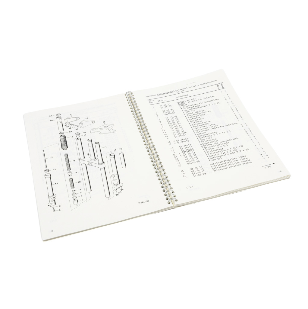 Enthält Explosionszeichnungen, originalnummern und Teilebezeichnungen von Kreidler Florett Mokick.