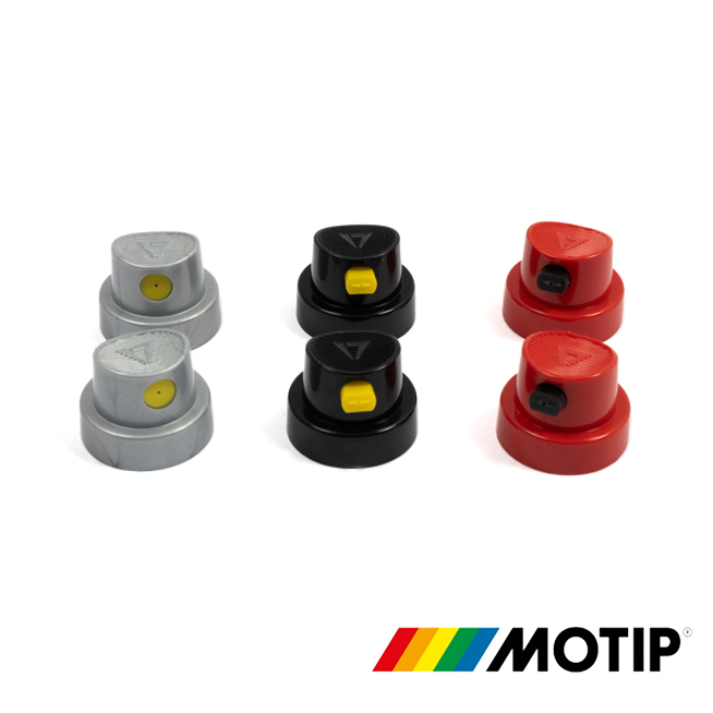 MOTIP Sprühkappen-Set mit 6 Kappen. Mit verschiedenen Sprühköpfen können Sie Sprühabstand und Sprühbreite von sehr fein bis breit für große Flächen variieren.